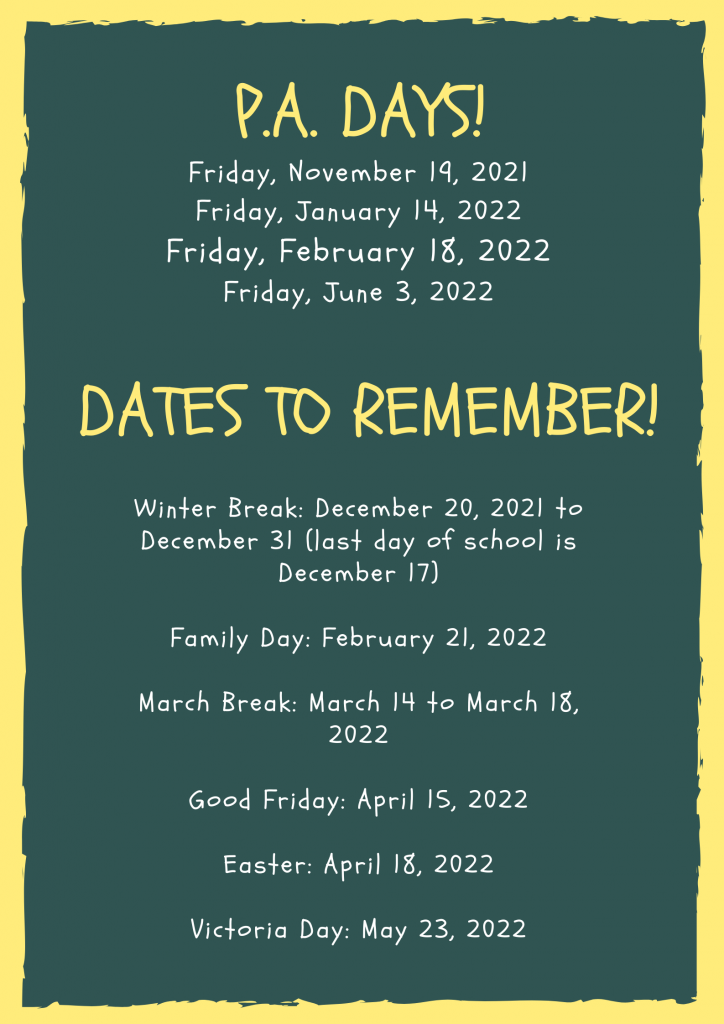 Save the dates! Please mark these important dates on your calendar as the school will be closed on these times.