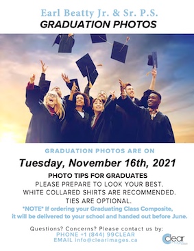 Tomorrow, November 16, is the day for photo re-takes and grad pictures! Don’t forget to bring your white shirts to school grads!