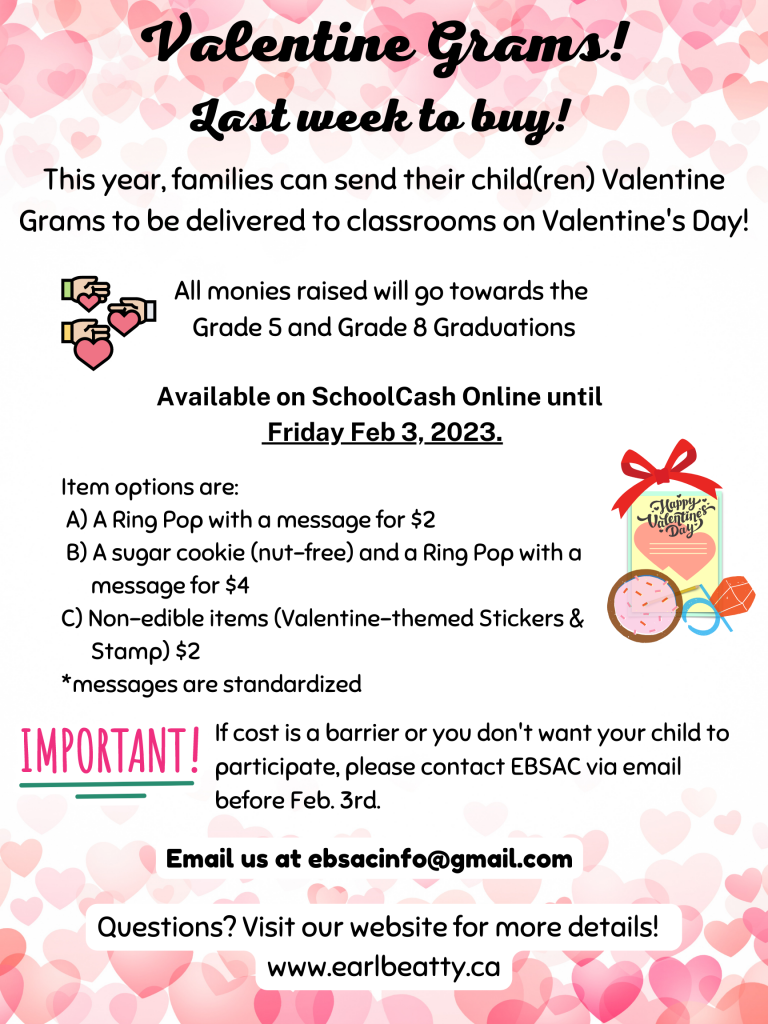 This is a FREE event and open to anybody in the Earl Beatty and Beatty Buddies communities. We will be selling pizza, popcorn, juice and treats as a fundraiser. The funds raised from food sales will go towards supporting important initiatives to improve the learning environment for our kids. These include the purchase ofΒ new sports storage equipment as requested by Ms Swire and the other phys ed teachers, and the purchase of magazine subscriptions and a new set of encyclopedias as requested by Ms Tirkos.Β