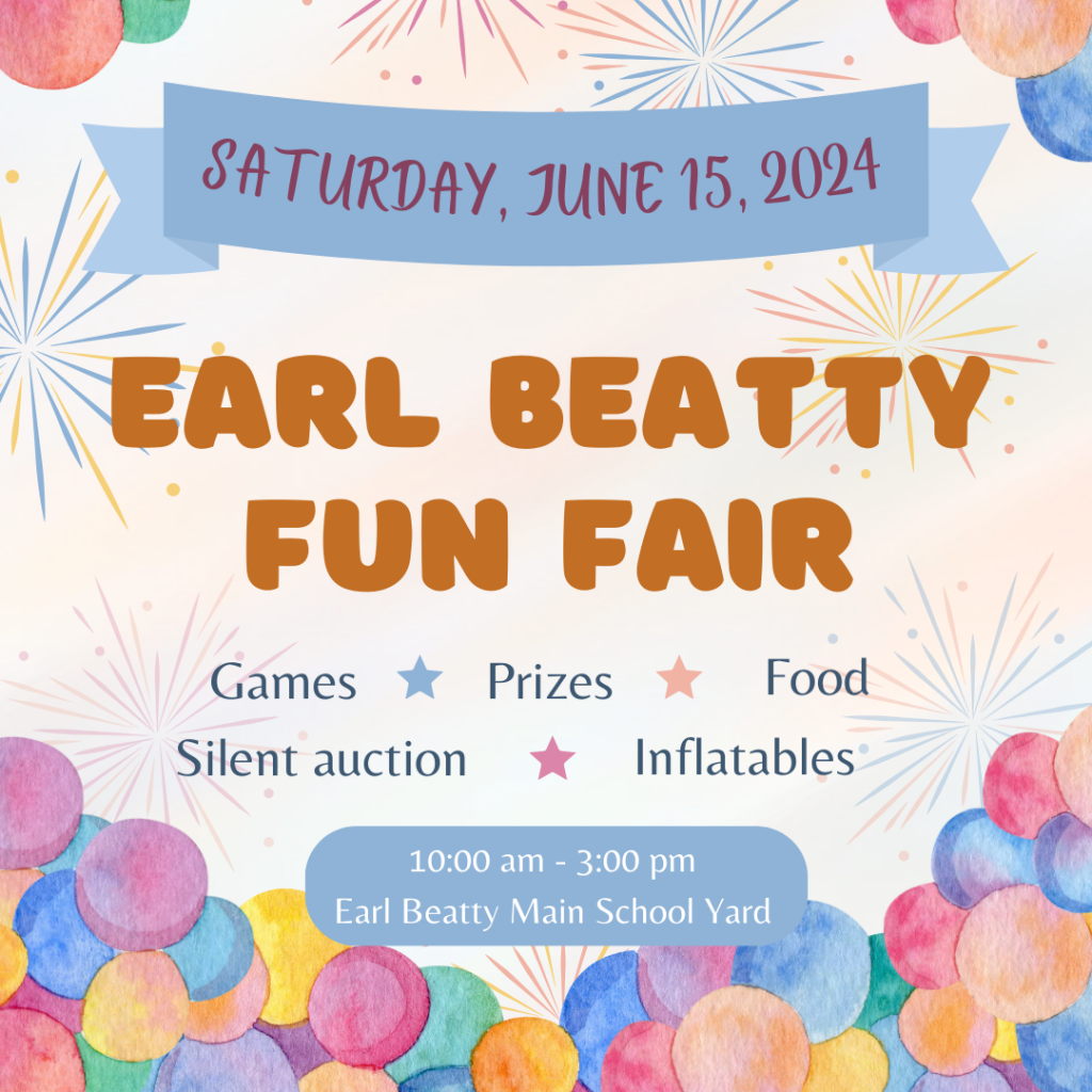 Join us on Saturday June 15 from 10:00 am to 3:00 pm for the annual Earl Beatty Fun Fair!