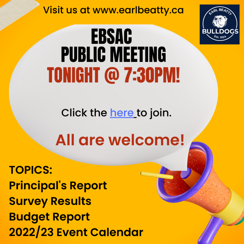 School is almost back in session! The Earl Beatty School Advisory Council would love you to join our dedicated group of parents to help make 2022/2023 the best school year ever!!